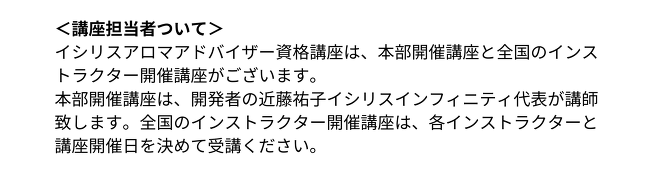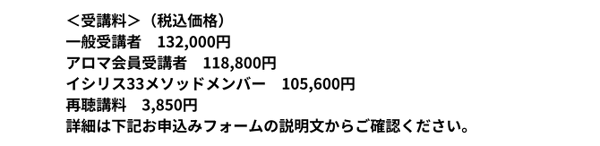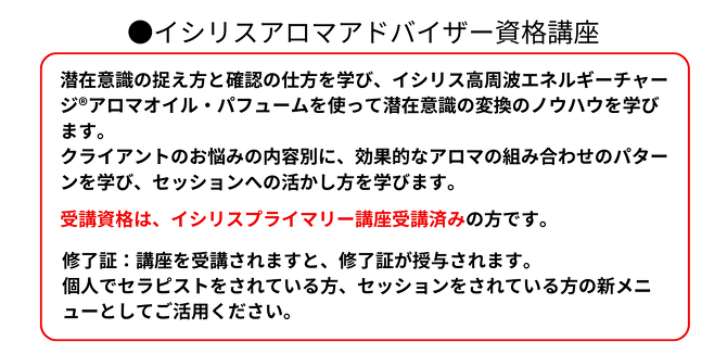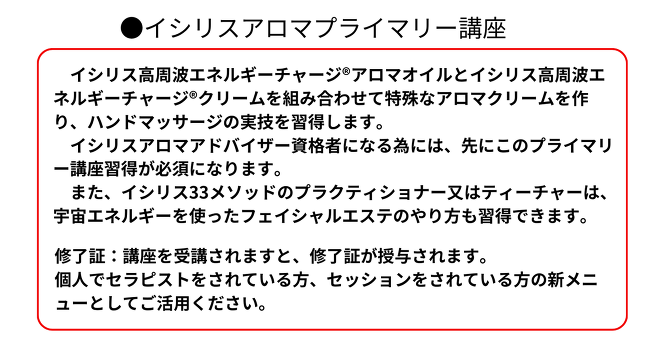 15:00〜16:30 | イシリスアロマプライマリー講座 |