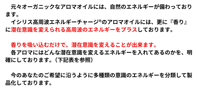 イシリス高周波エネルギーチャージ®アロマの特徴